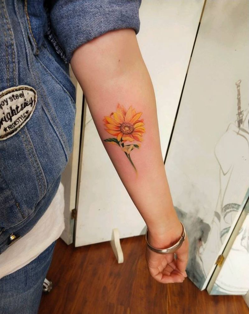 向日葵完工了纹身图片_手臂水彩纹身图案