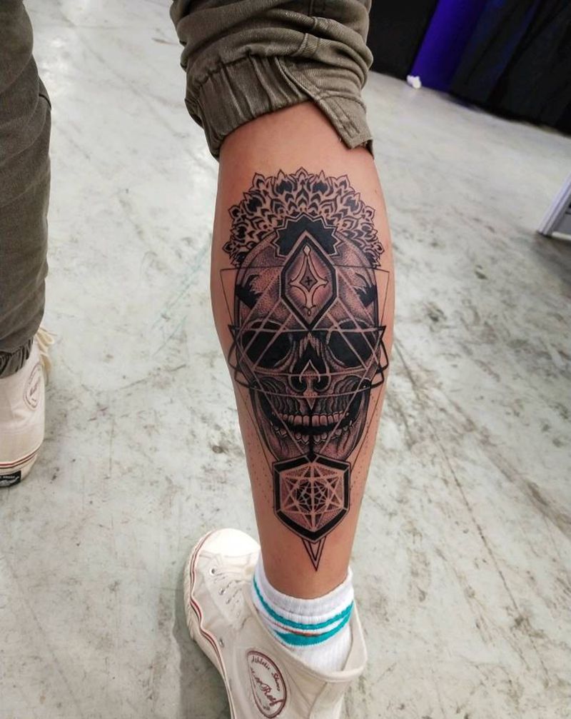 当前位置: 首页 >云南省昆明市纹身店-昆明 纹人墨刻刺青纹身图案>骷髅纹身图片_腿部点刺几何纹身图案