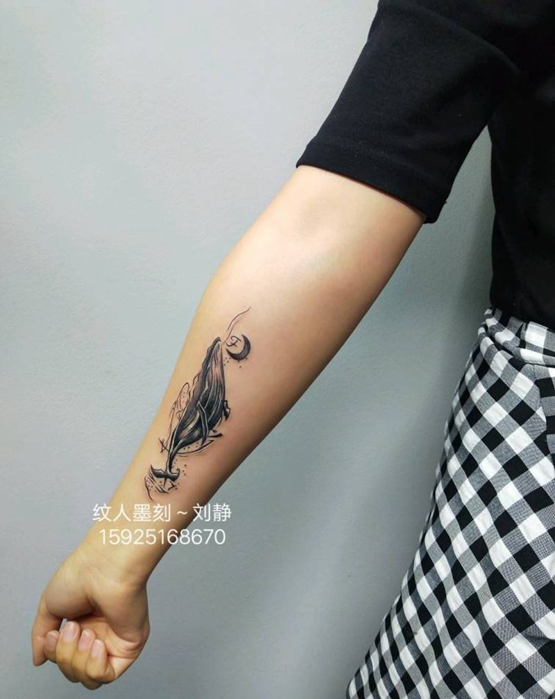 情侣纹身,鲸纹身图片_手臂欧美写实纹身图案