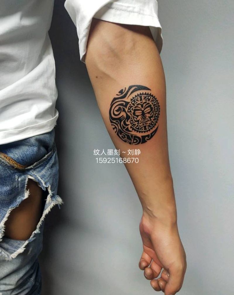 你是我的太阳我是你的月亮纹身图片_手臂图腾原创设计纹身图案