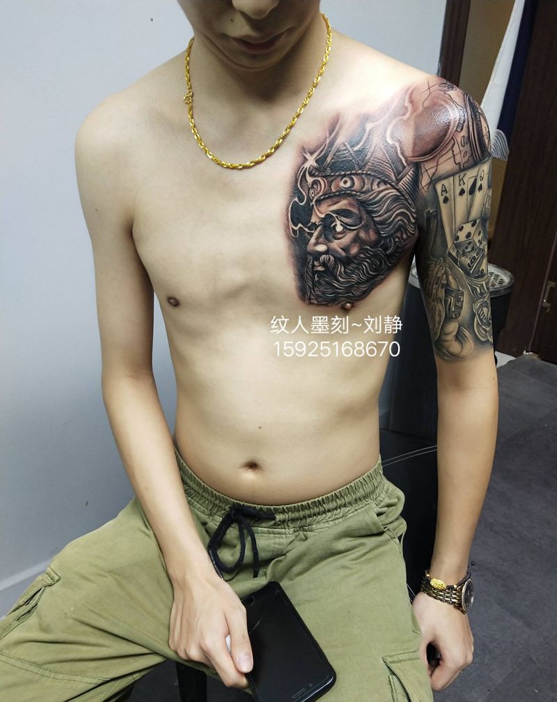 当前位置: 首页 >云南省昆明市纹身店-昆明 纹人墨刻刺青纹身图案>欧美写实纹身图片_手臂胸部欧美写实纹身图案