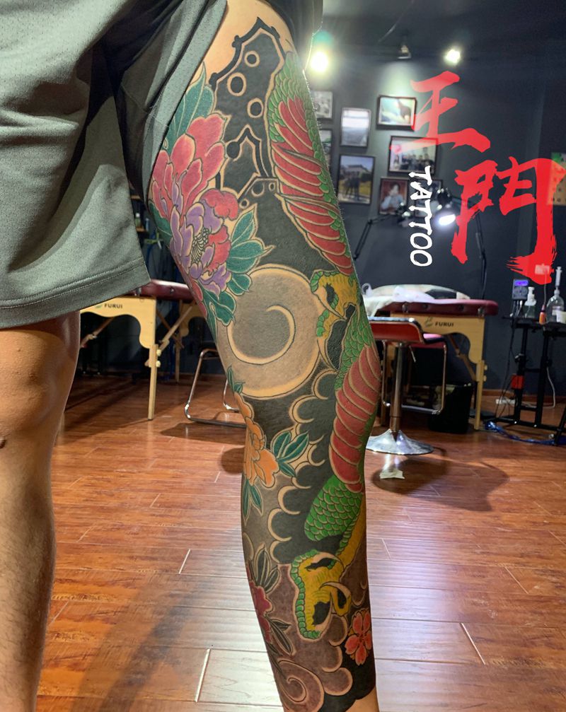• T网红王老大花腿龙纹身图片_腿部新传统纹身图案
