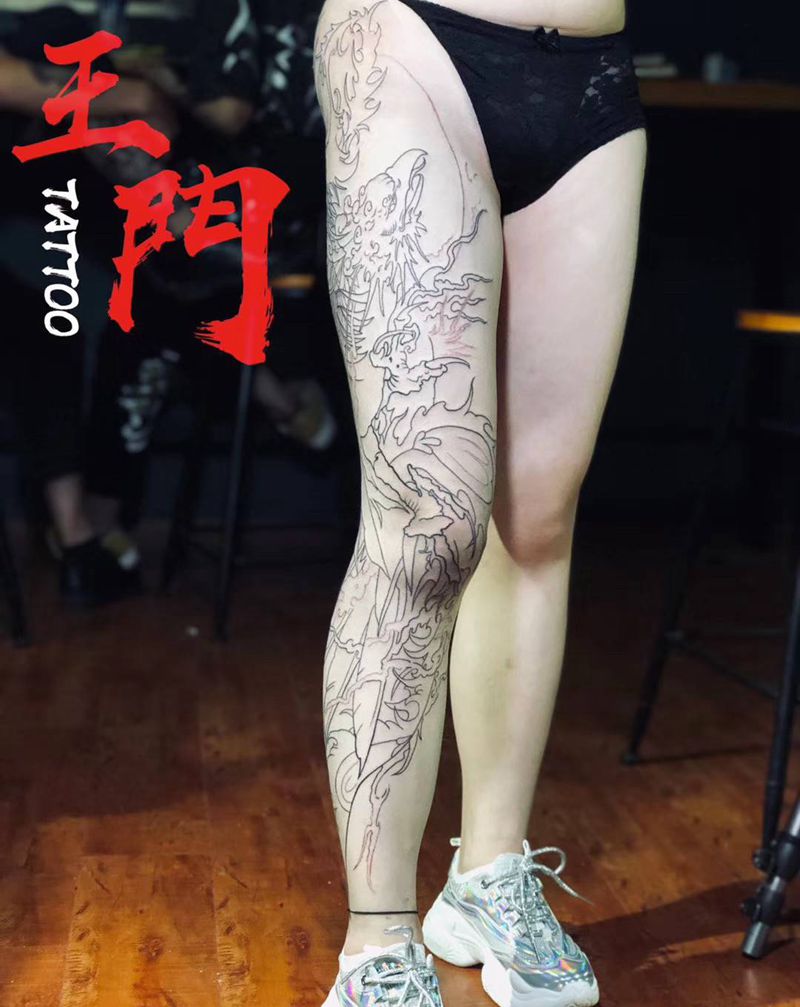 • T网红王老大花腿龙纹身图片_腿部新传统纹身图案