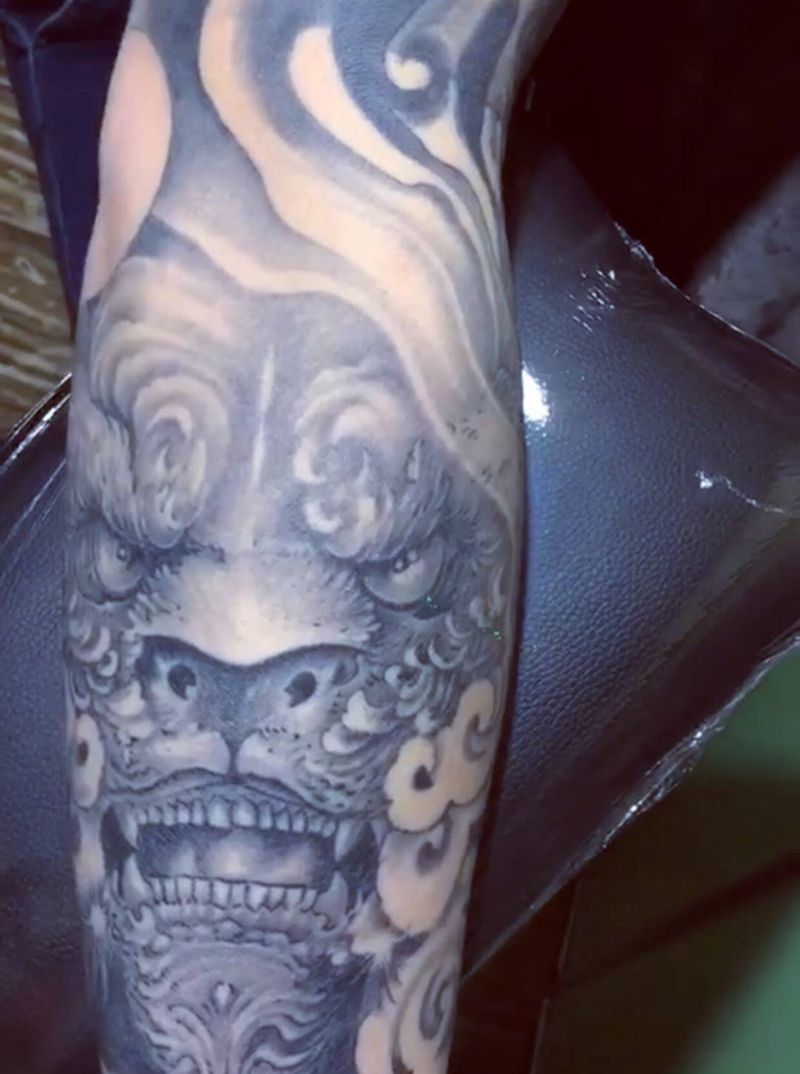 黑灰唐狮纹身图片