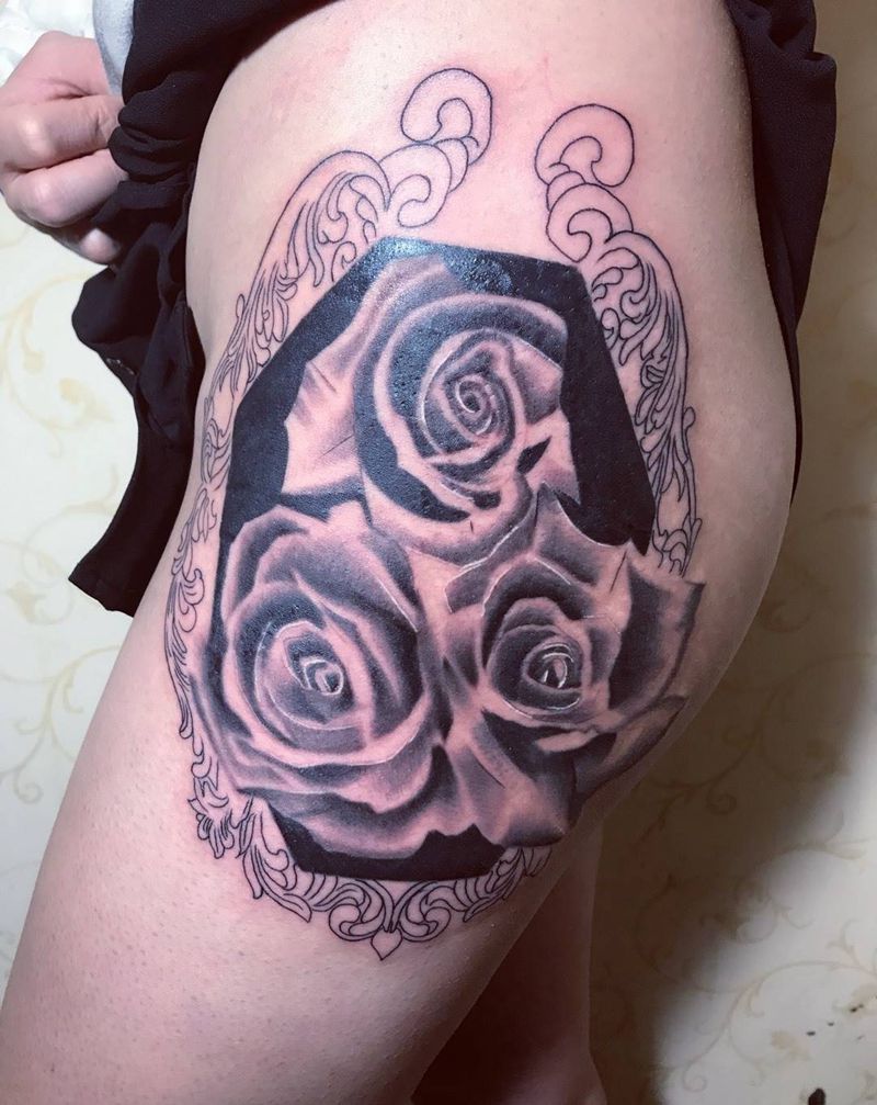 黑灰玫瑰纹身图片