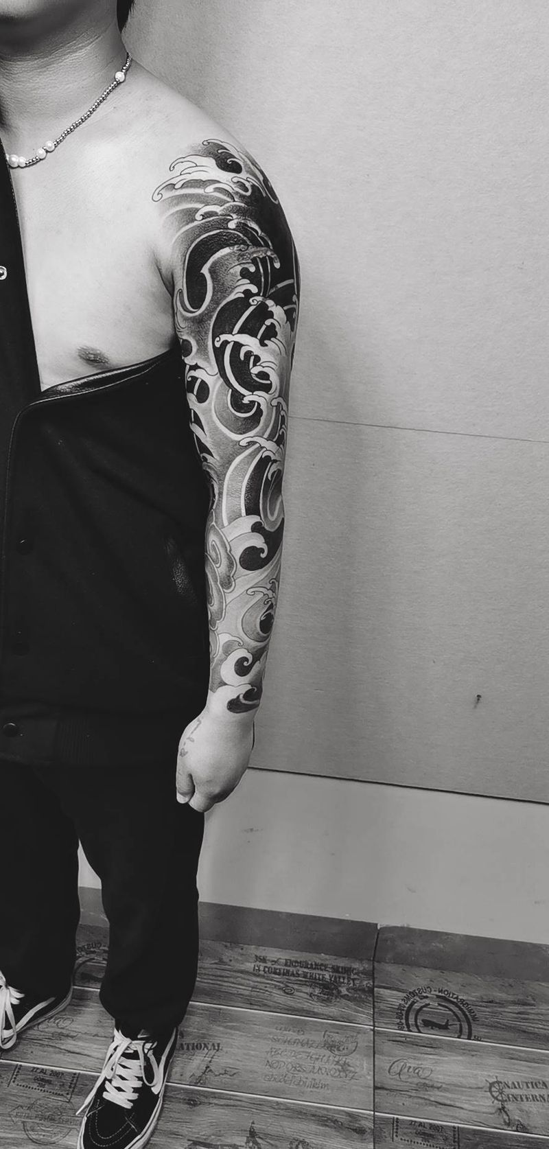 当前位置: 首页 >云南省曲靖市纹身店-金艺神刺工作室纹身图案>浪花 花臂 遮盖纹身图片_手臂新传统纹身图案