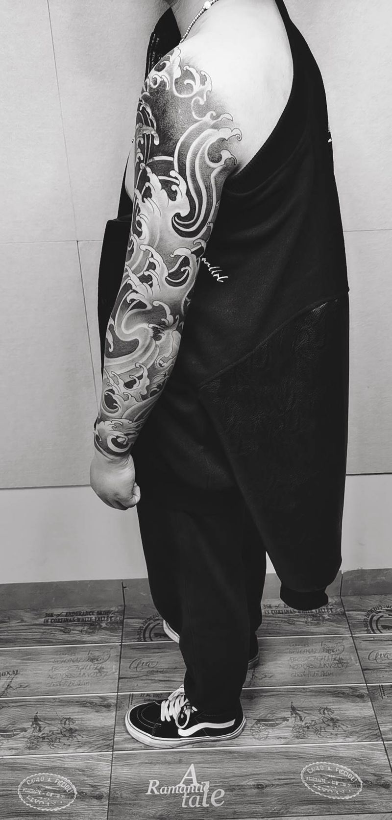 当前位置: 首页 >云南省曲靖市纹身店-金艺神刺工作室纹身图案>浪花 花臂 遮盖纹身图片_手臂新传统纹身图案