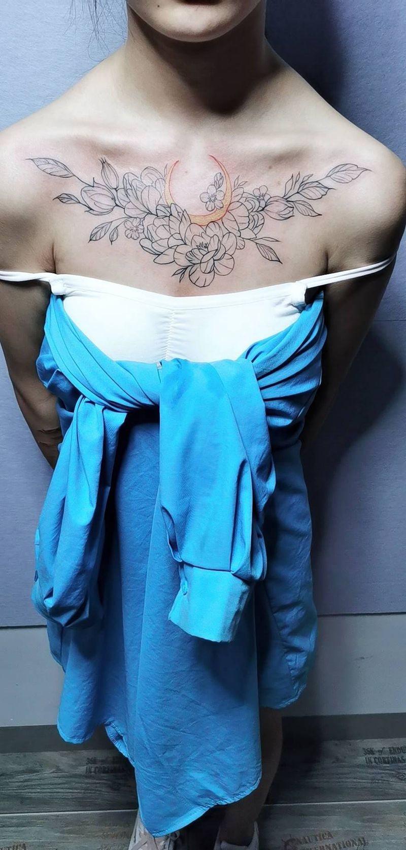• 女性大花胸纹身_43张霸气漂亮的女性大花胸纹身图案作品