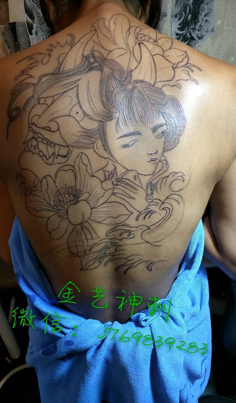 班若 明月纹身图片_背部写实动物人物成品纹身图案