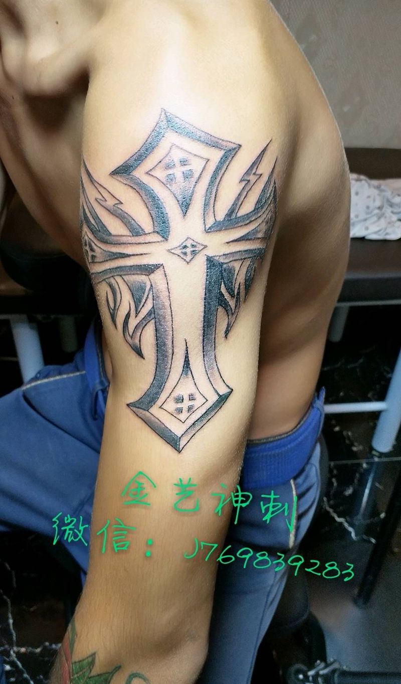 当前位置: 首页 >云南省曲靖市纹身店-金艺神刺工作室纹身图案>十字架纹身图片_手臂写实图腾成品纹身图案