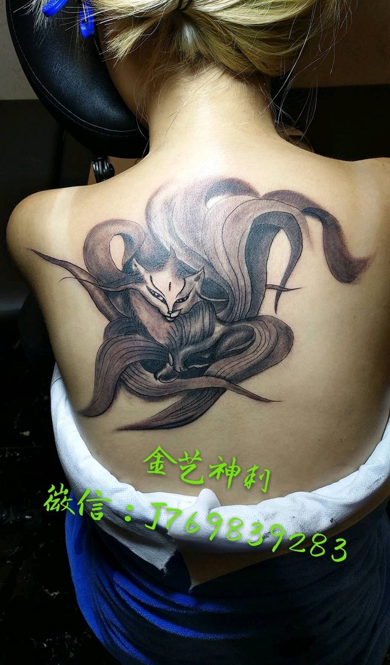 当前位置: 首页 >云南省曲靖市纹身店-金艺神刺工作室纹身图案>九尾狐纹身图片_背部习俗动物成品纹身图案