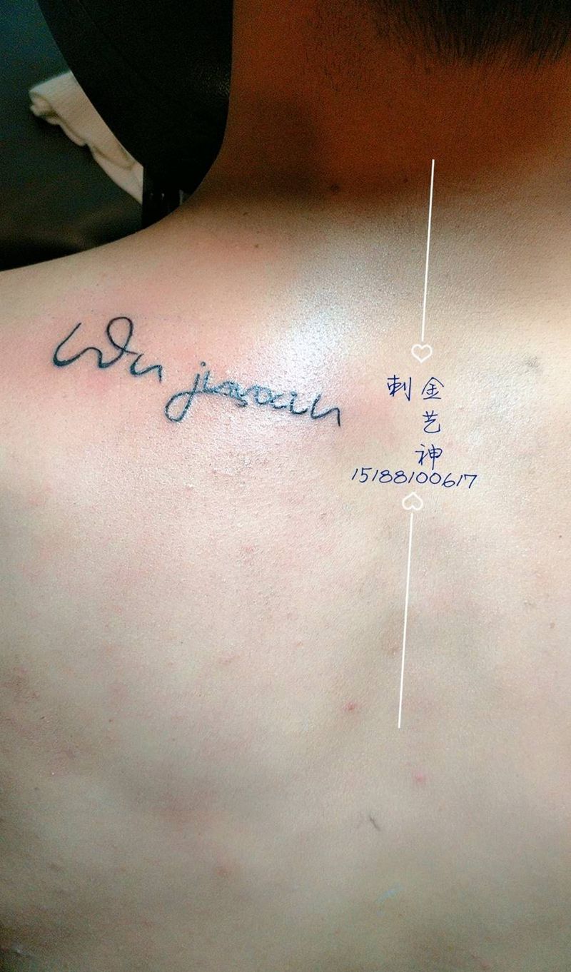 当前位置: 首页 >云南省曲靖市纹身店-金艺神刺工作室纹身图案>英文 名字纹身图片_背部清新字符原创成品纹身图案