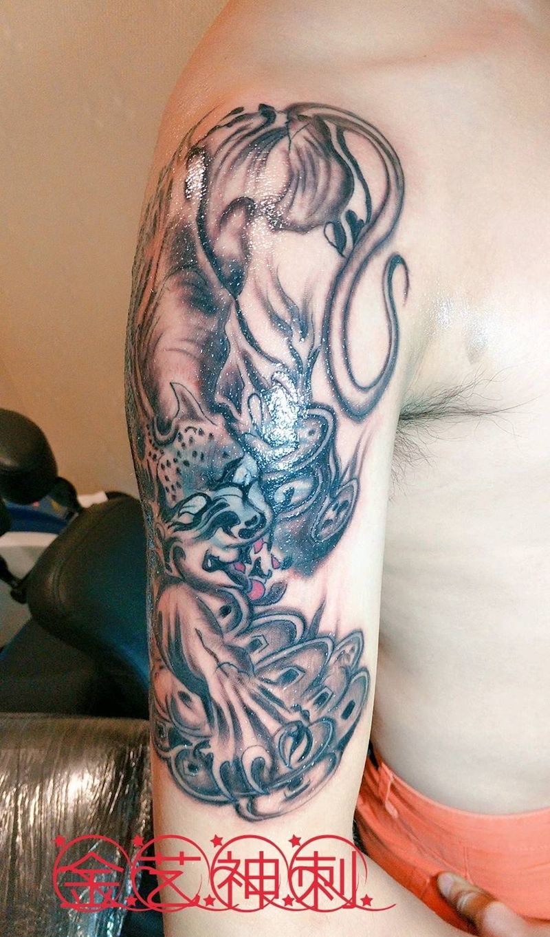 大臂貔貅遮盖纹身图片_手臂习俗动物成品纹身图案
