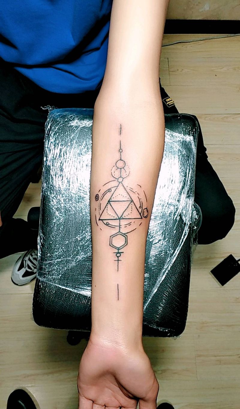 当前位置: 首页 >云南省曲靖市纹身店-金艺神刺工作室纹身图案>情侣 纹身 几何纹身图片_手臂清新几何情侣原创成品纹身图案