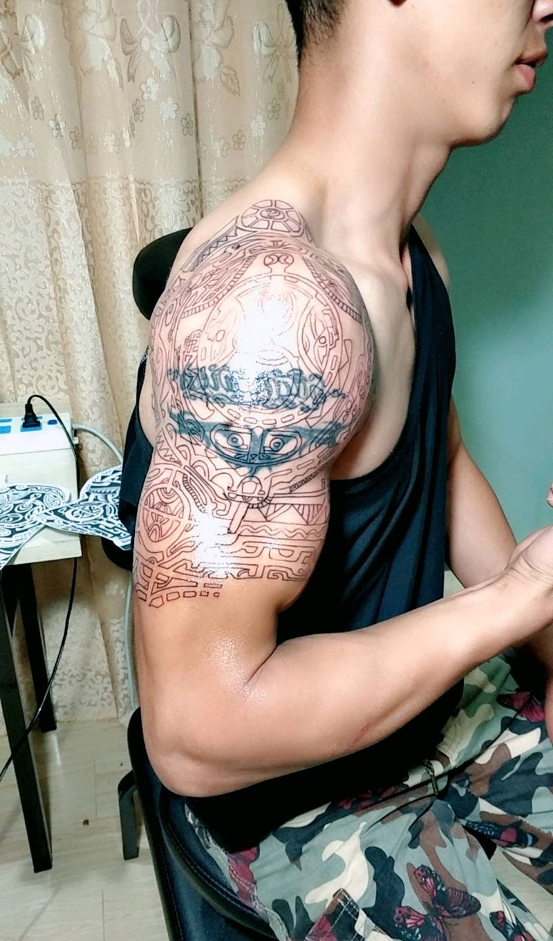 当前位置: 首页 >云南省曲靖市纹身店-金艺神刺工作室纹身图案>强森 同款 图腾 遮盖旧纹身纹身图片_手臂传统图腾成品纹身图案