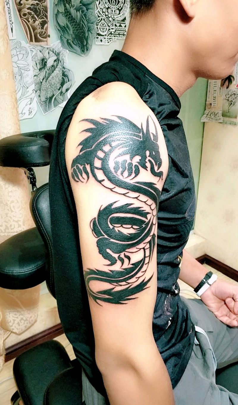当前位置: 首页 >云南省曲靖市纹身店-金艺神刺工作室纹身图案>龙图腾纹身图片_手臂传统动物图腾原创成品纹身图案