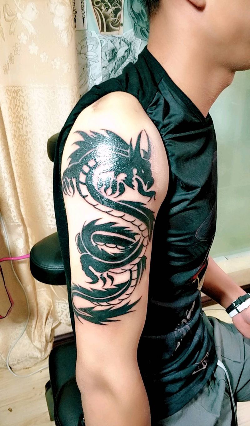 当前位置: 首页 >云南省曲靖市纹身店-金艺神刺工作室纹身图案>龙图腾纹身图片_手臂传统动物图腾原创成品纹身图案