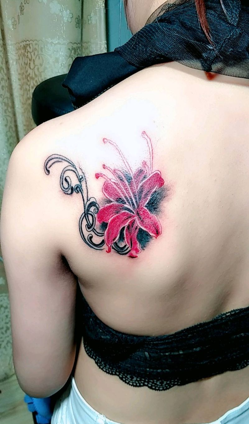 当前位置: 首页 >云南省曲靖市纹身店-金艺神刺工作室纹身图案>彼岸花纹身图片_肩部习俗植物成品纹身图案