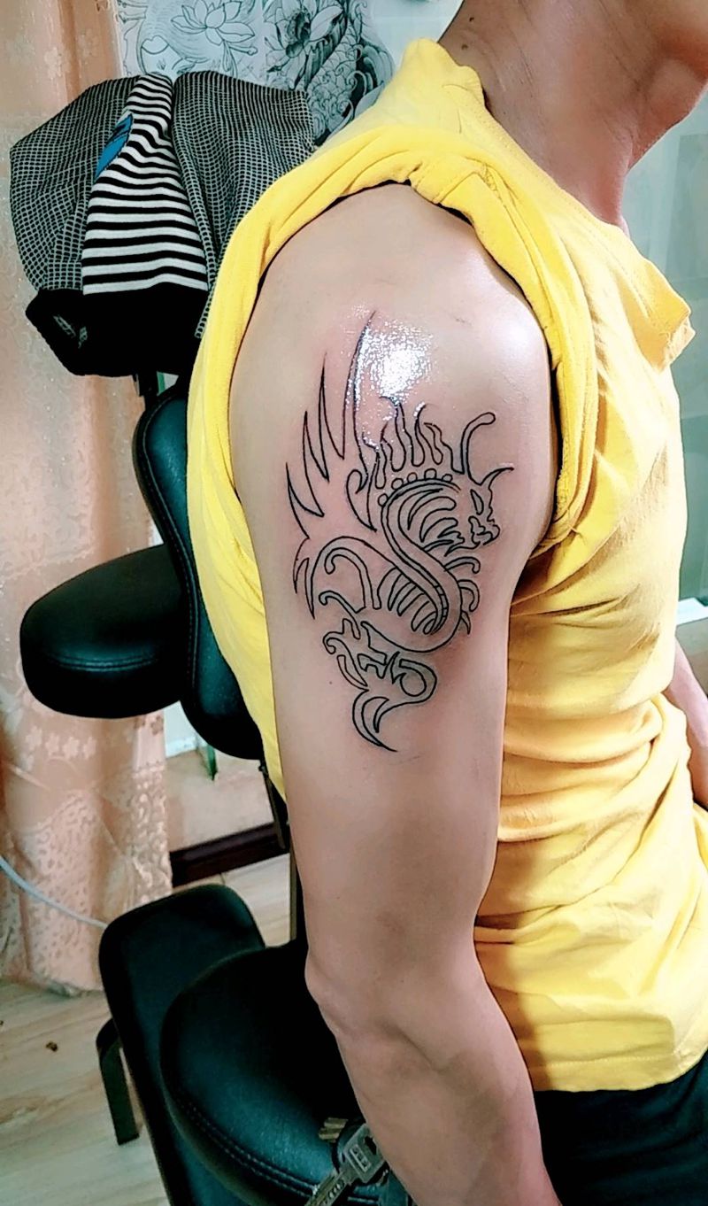 当前位置: 首页 >云南省曲靖市纹身店-金艺神刺工作室纹身图案>图腾 龙 线条完成纹身图片_手臂传统人物图腾成品纹身图案
