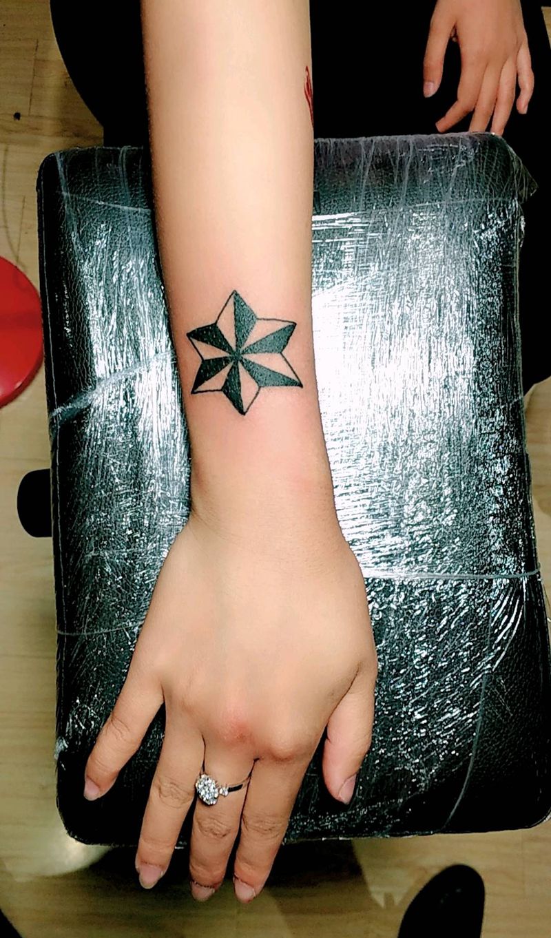 当前位置: 首页 >云南省曲靖市纹身店-金艺神刺工作室纹身图案>闺密 同款 不同位纹身图片_手臂清新几何图腾情侣原创成品纹身图案
