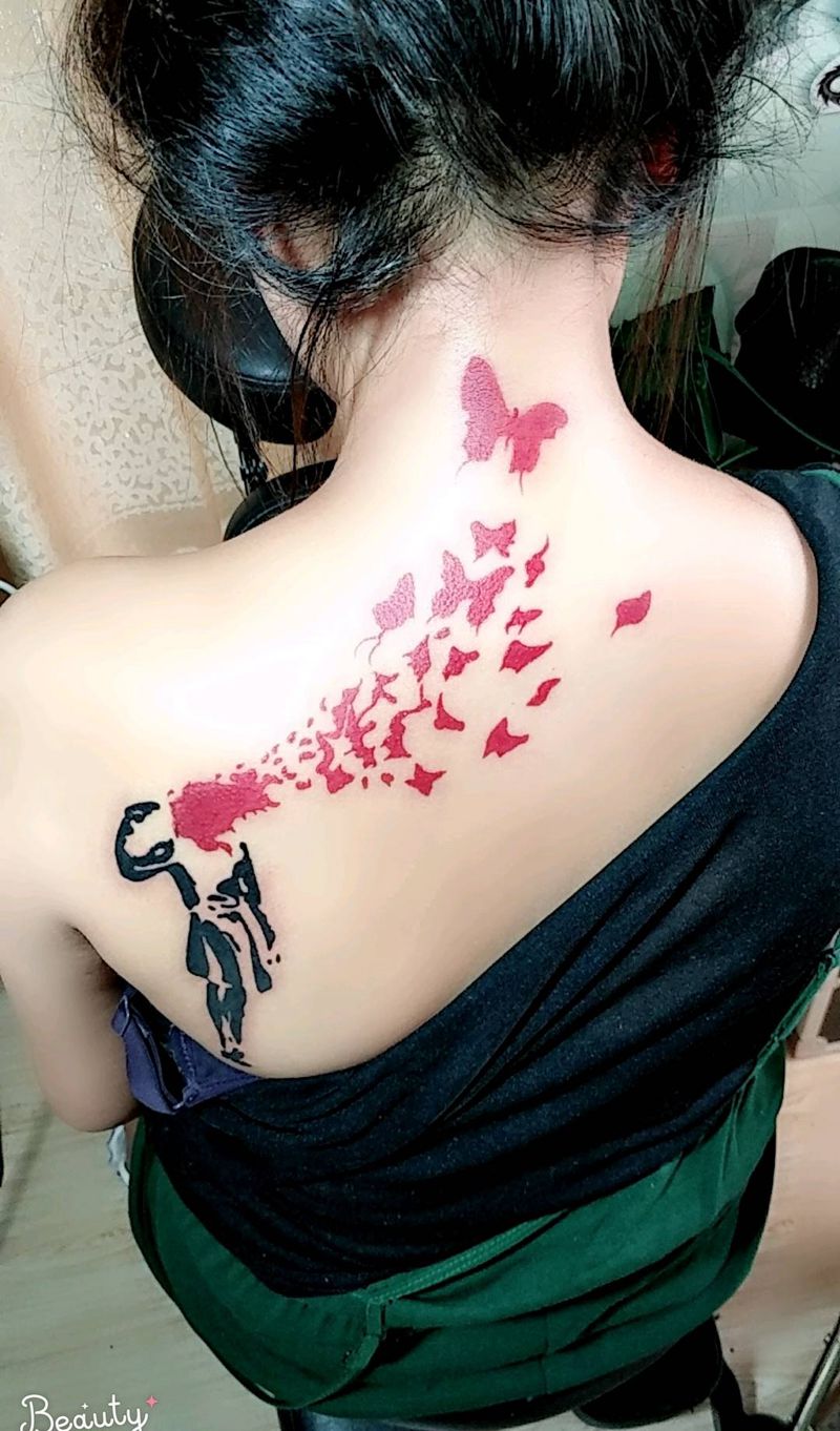 创意甚好纹身图片_背部新传统水墨纹身图案