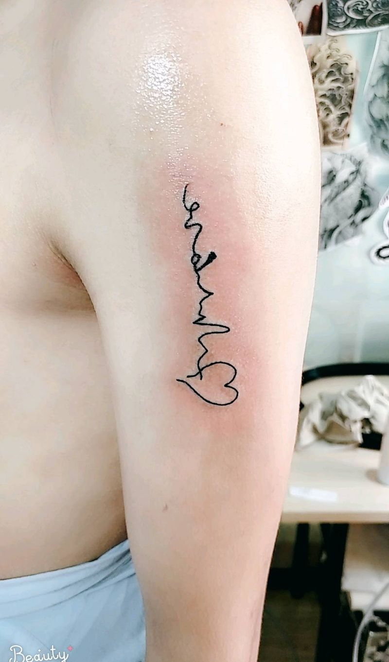 当前位置: 首页 >云南省曲靖市纹身店-金艺神刺工作室纹身图案>心电图 标志纹身图片_手臂新传统纹身图案