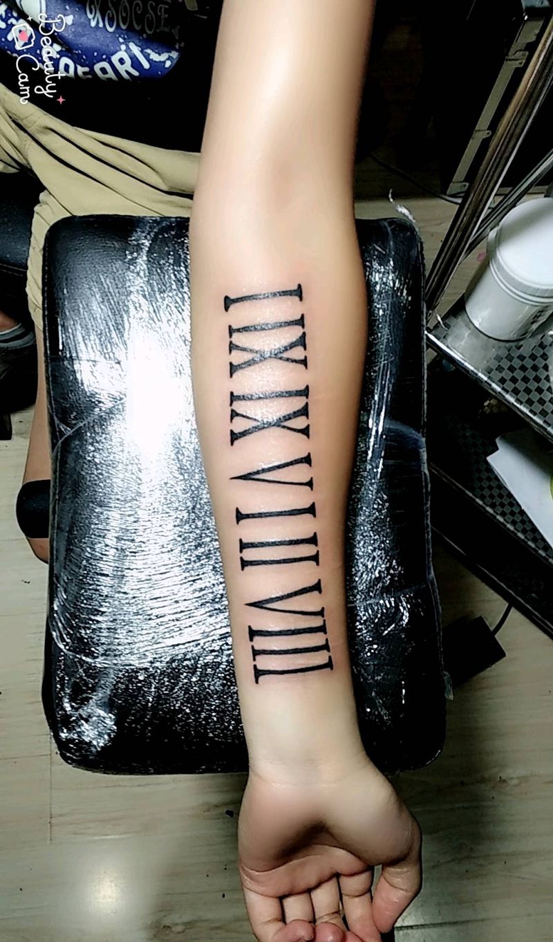当前位置: 首页 >云南省曲靖市纹身店-金艺神刺工作室纹身图案>情侣纹身 罗马数字纹身图片_肩部手臂新传统纹身图案