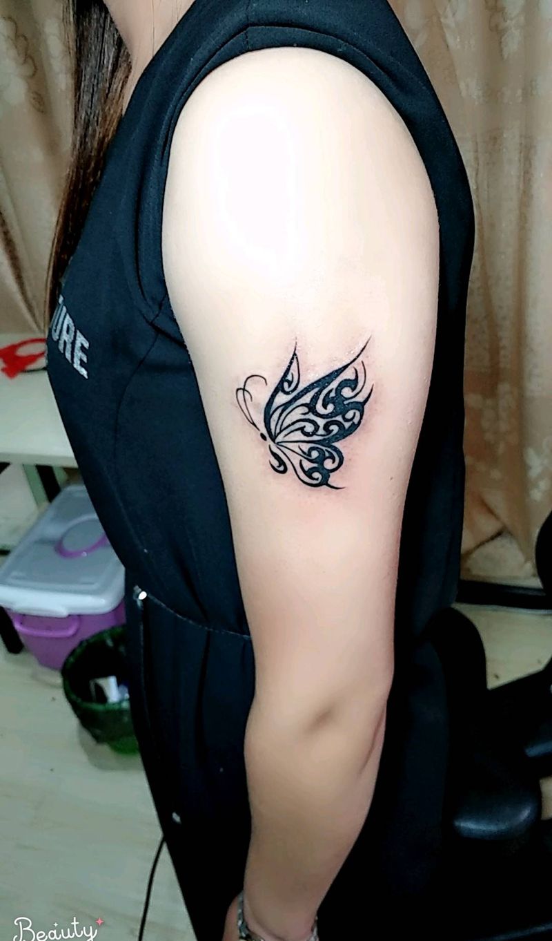 图腾蝴蝶 遮盖旧纹身纹身图片_手臂新传统图腾纹身图案