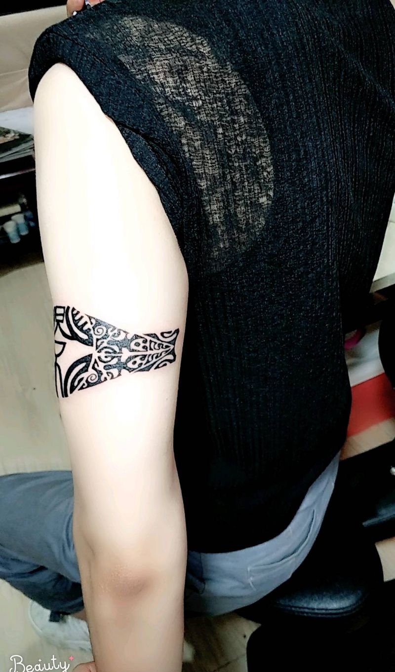 当前位置: 首页 >云南省曲靖市纹身店-金艺神刺工作室纹身图案>图腾 添加了汉字纹身图片_手臂老传统图腾纹身图案
