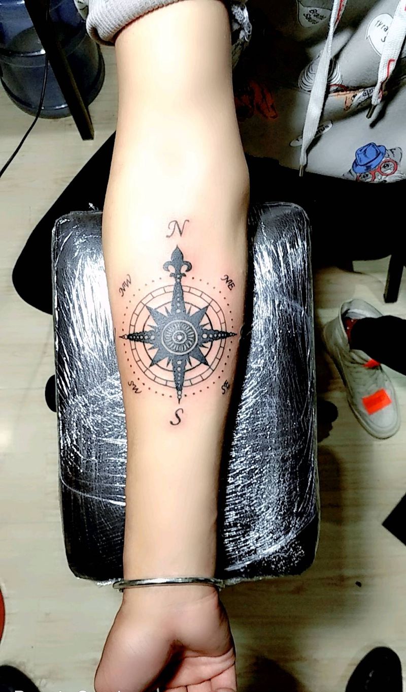 当前位置: 首页 >云南省曲靖市纹身店-金艺神刺工作室纹身图案>指南针纹身图片_手臂图腾几何纹身图案