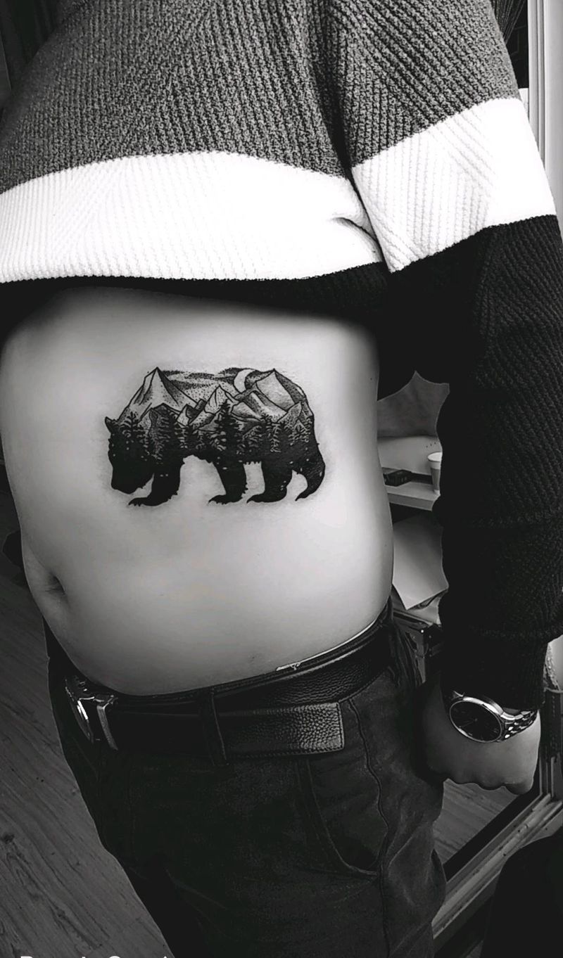 当前位置: 首页 >云南省曲靖市纹身店-金艺神刺工作室纹身图案>.熊 遮盖伤疤纹身图片_腹部几何点刺纹身图案
