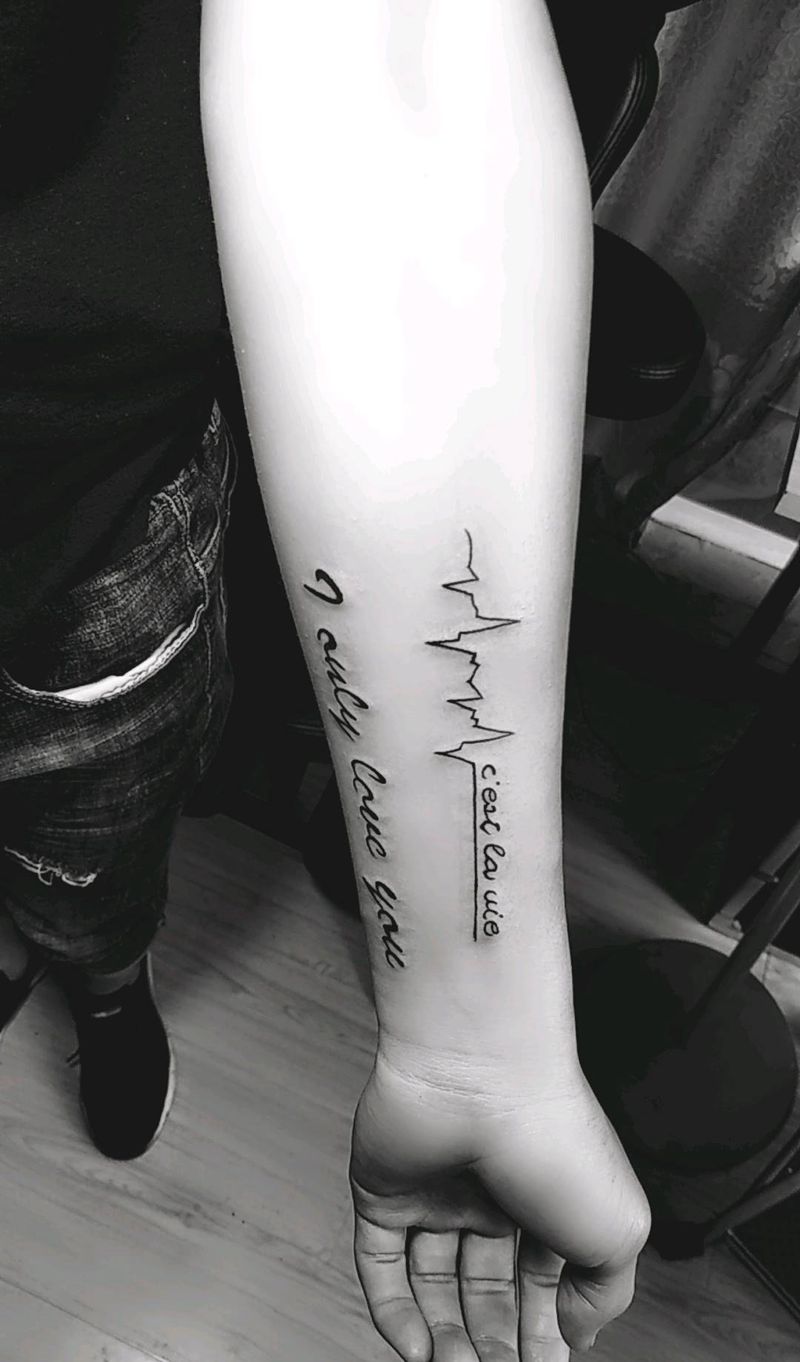 当前位置: 首页 >云南省曲靖市纹身店-金艺神刺工作室纹身图案>英文字母 心电图纹身图片_手臂新传统纹身图案