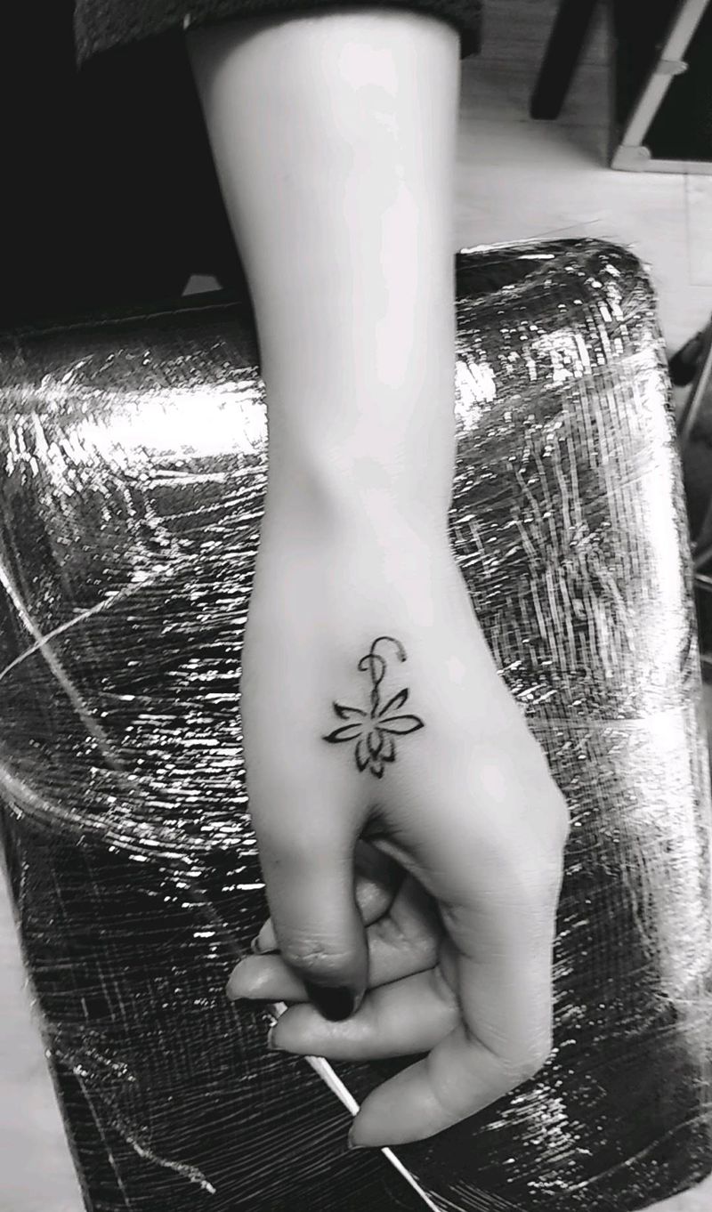 • 手背潮流时尚的玫瑰花眼睛纹身图案
