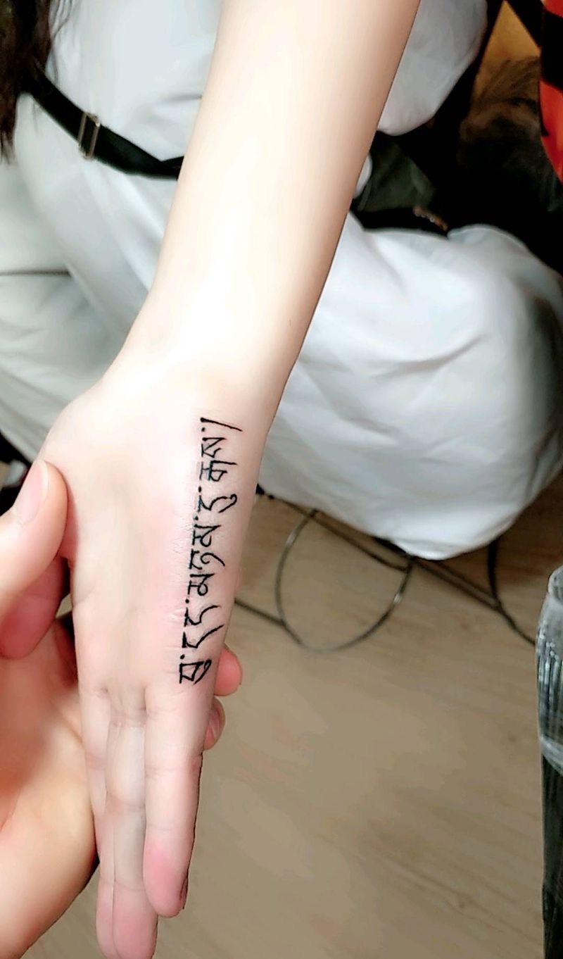 当前位置: 首页 >云南省曲靖市纹身店-金艺神刺工作室纹身图案>藏文纹身图片_手部新传统纹身图案