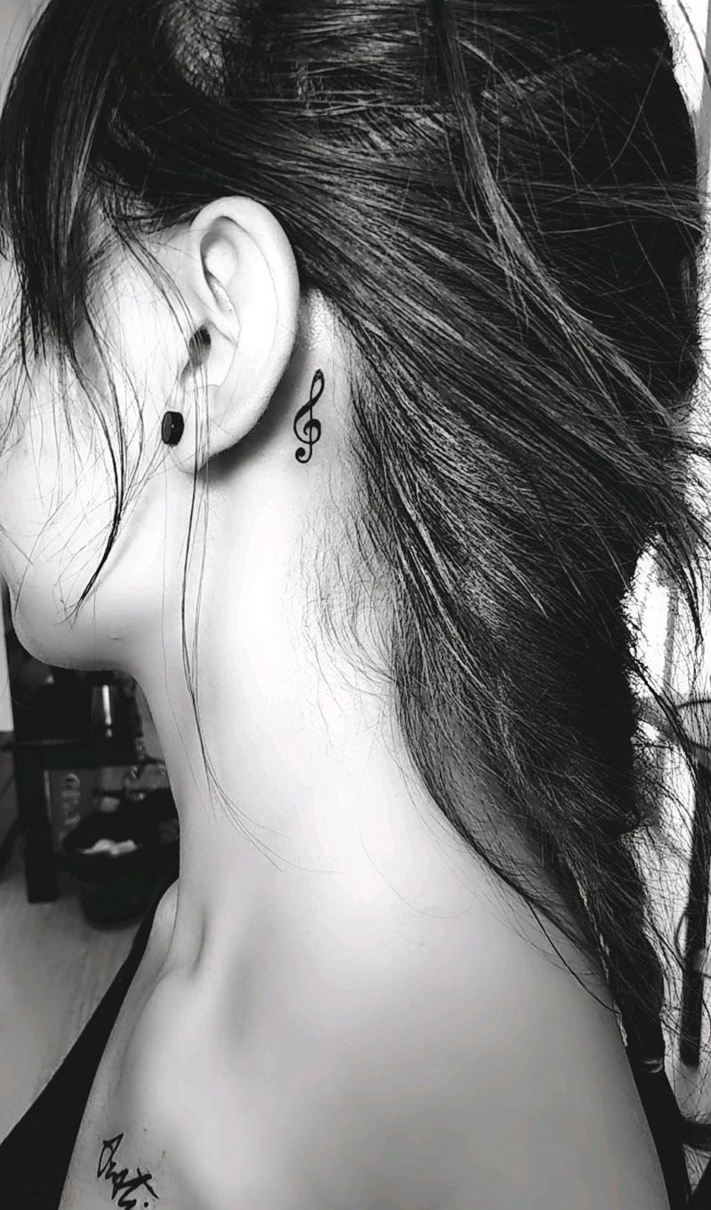 性感位置 漂亮 乐符 和 签名纹身图片