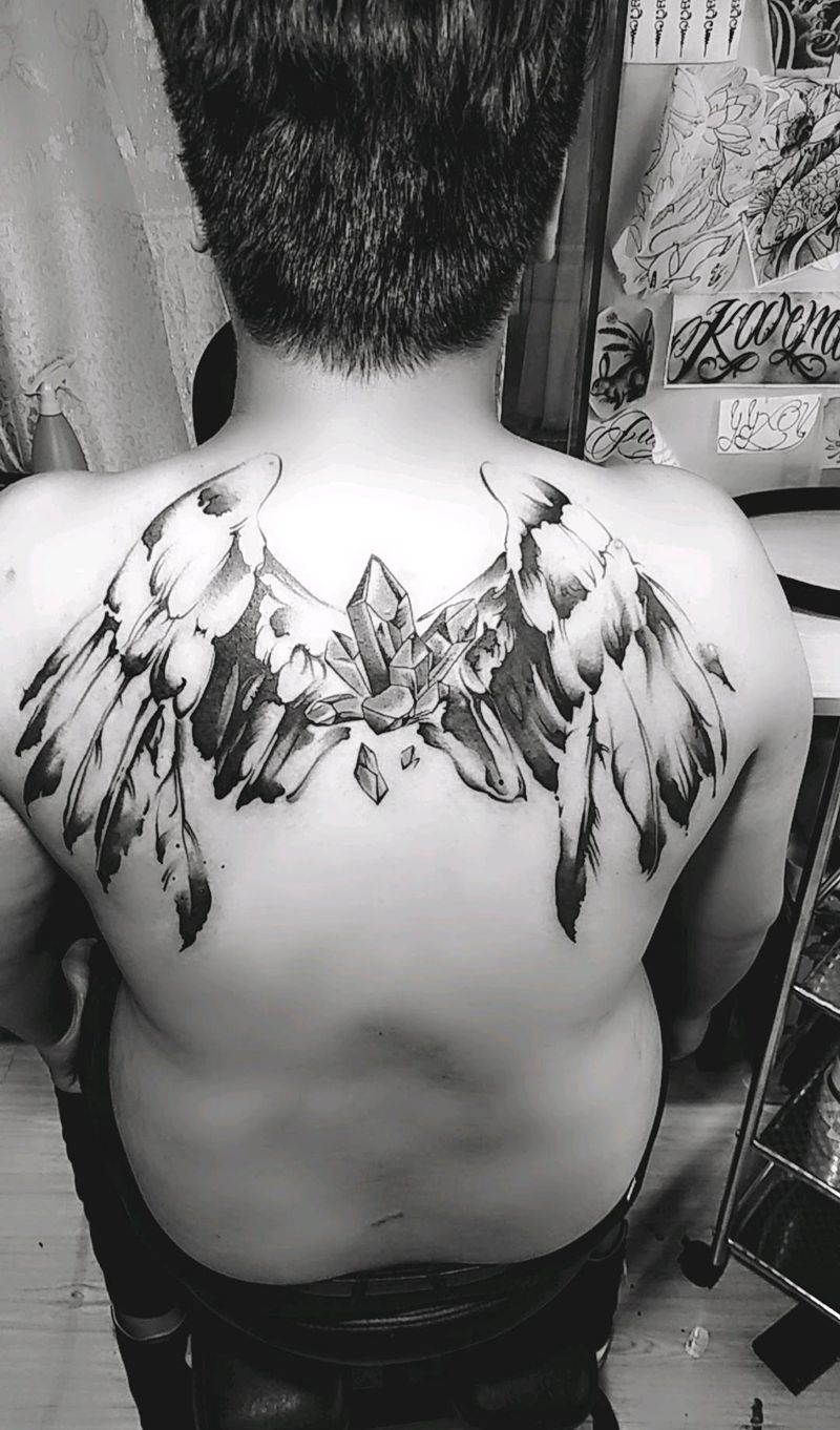 当前位置: 首页 >云南省曲靖市纹身店-金艺神刺工作室纹身图案>翅膀纹身图片_背部新传统纹身图案