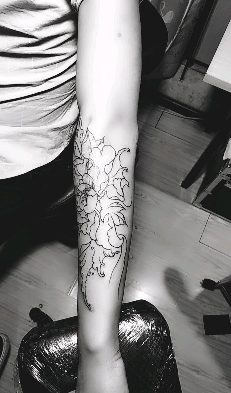 牡丹 遮盖 伤疤纹身图片_手臂新传统纹身图案