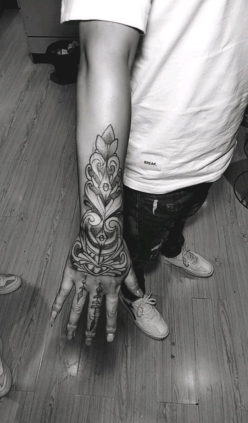 点刺纹身图片_手臂手部几何点刺纹身图案