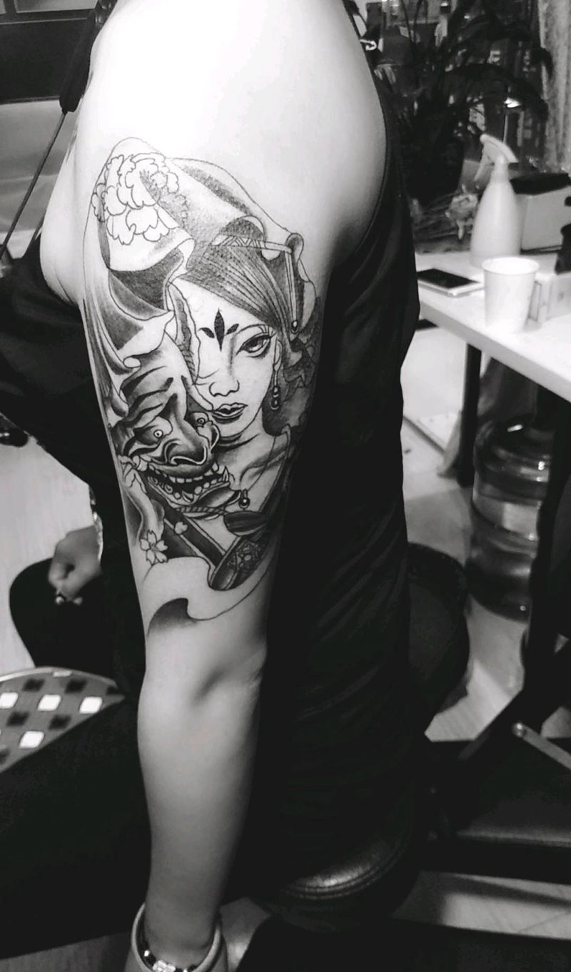 艺妓般若纹身图片_手臂新传统纹身图案