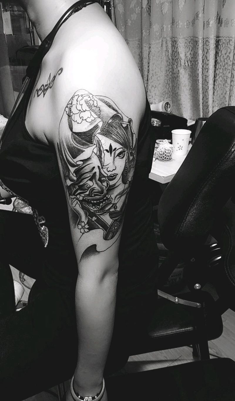 艺妓般若纹身图片_手臂新传统纹身图案