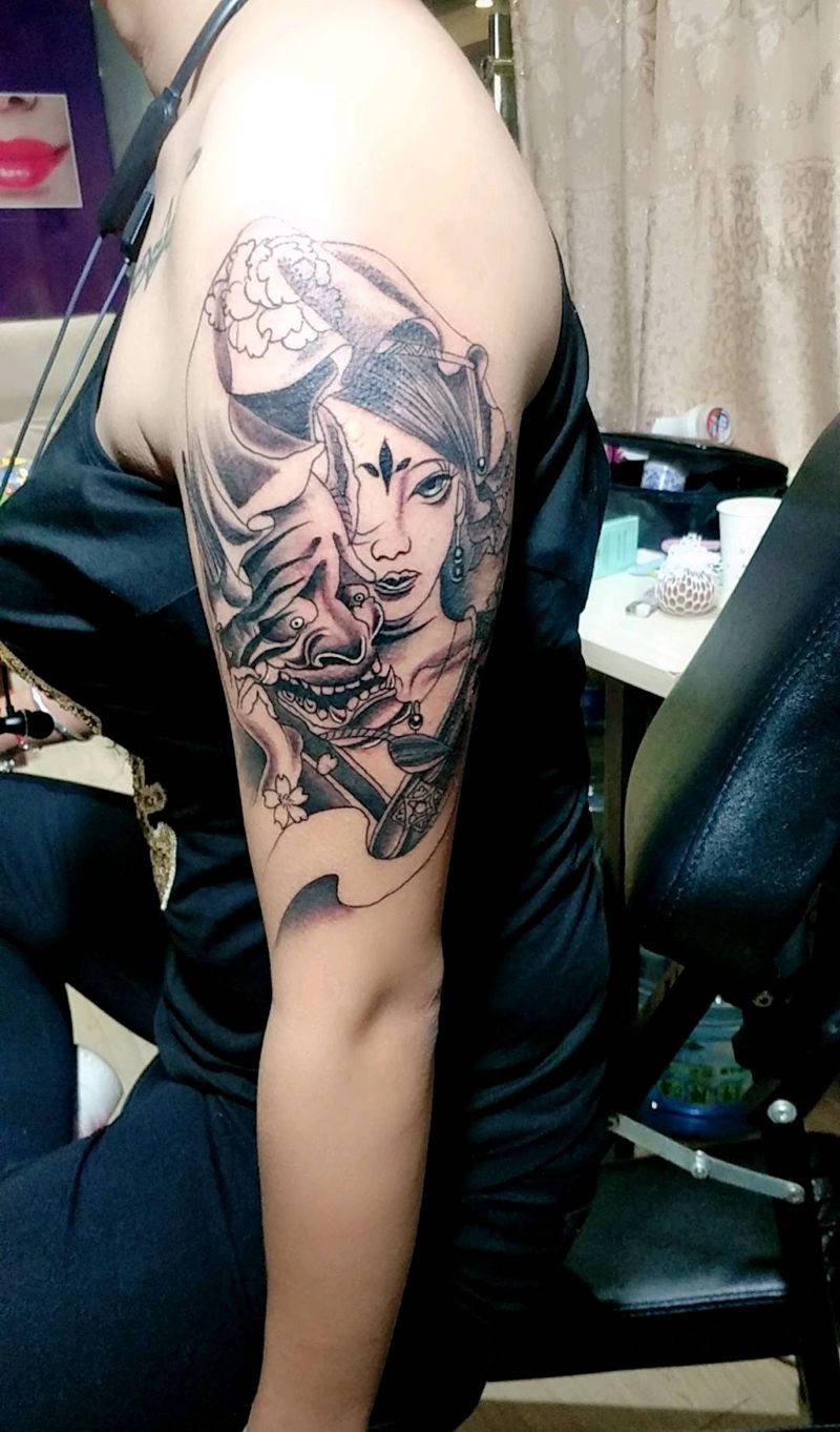 当前位置: 首页 >云南省曲靖市纹身店-金艺神刺工作室纹身图案>艺妓般若纹身图片_手臂新传统纹身图案