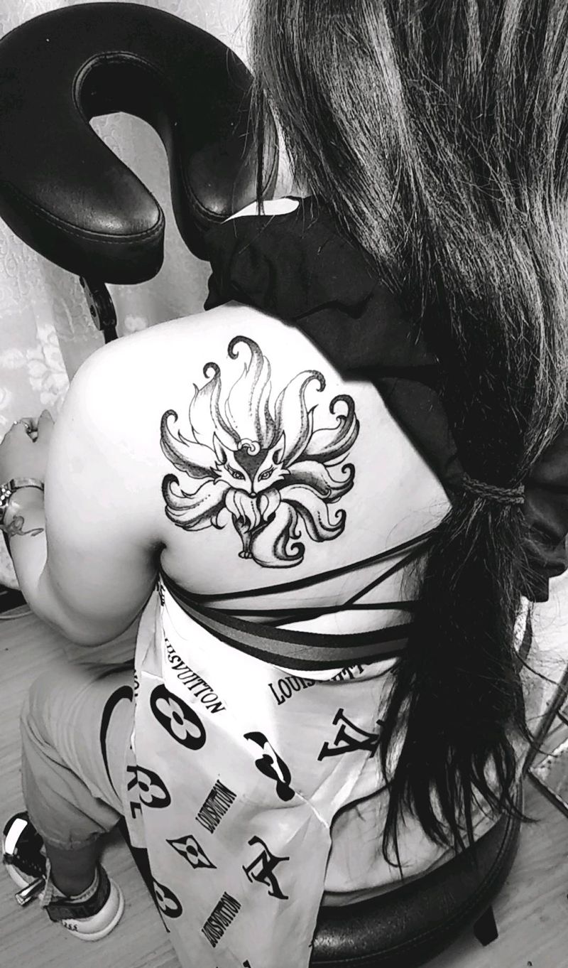 九尾狐纹身图片_背部点刺纹身图案