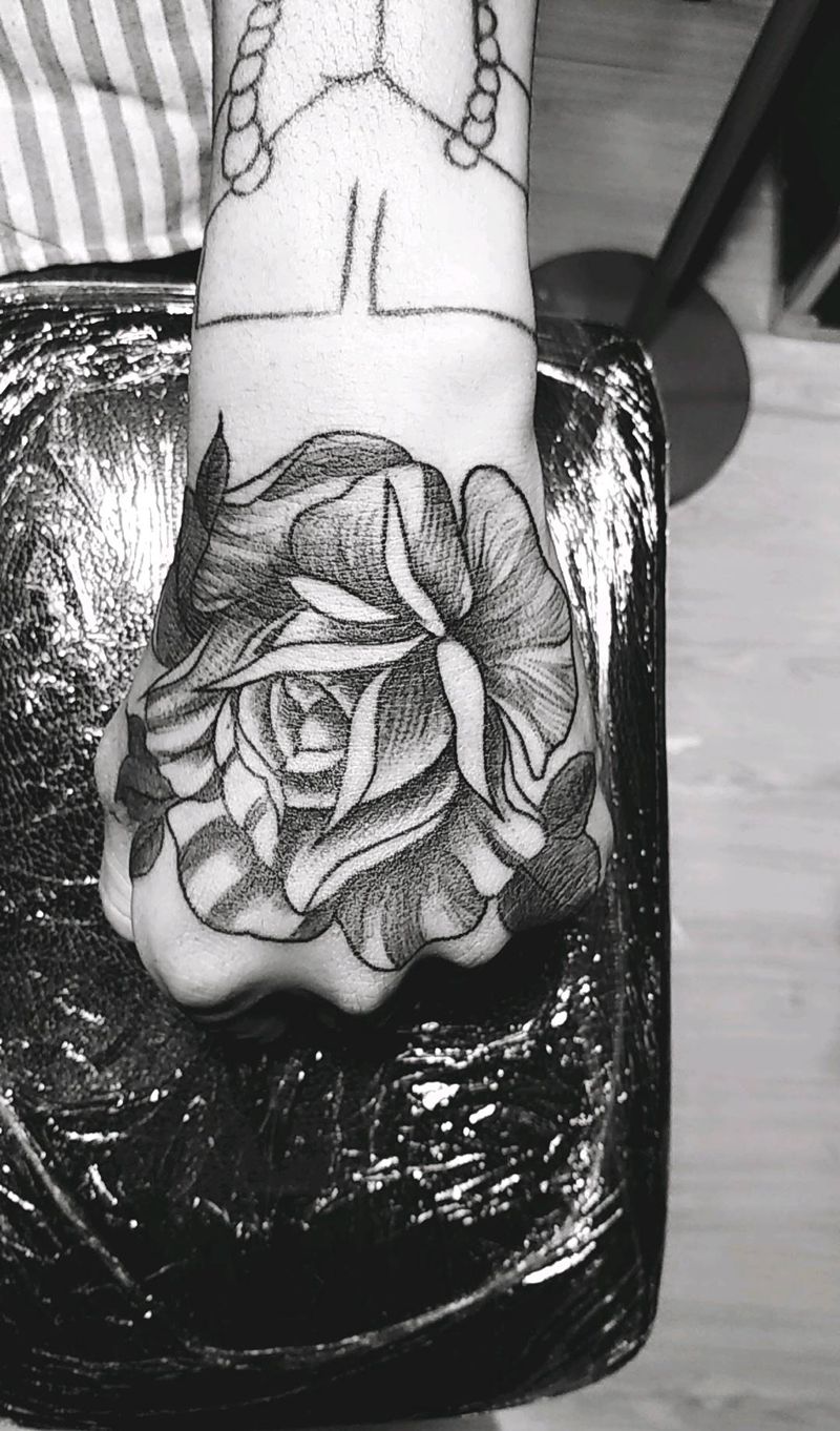 • 手背潮流时尚的玫瑰花眼睛纹身图案