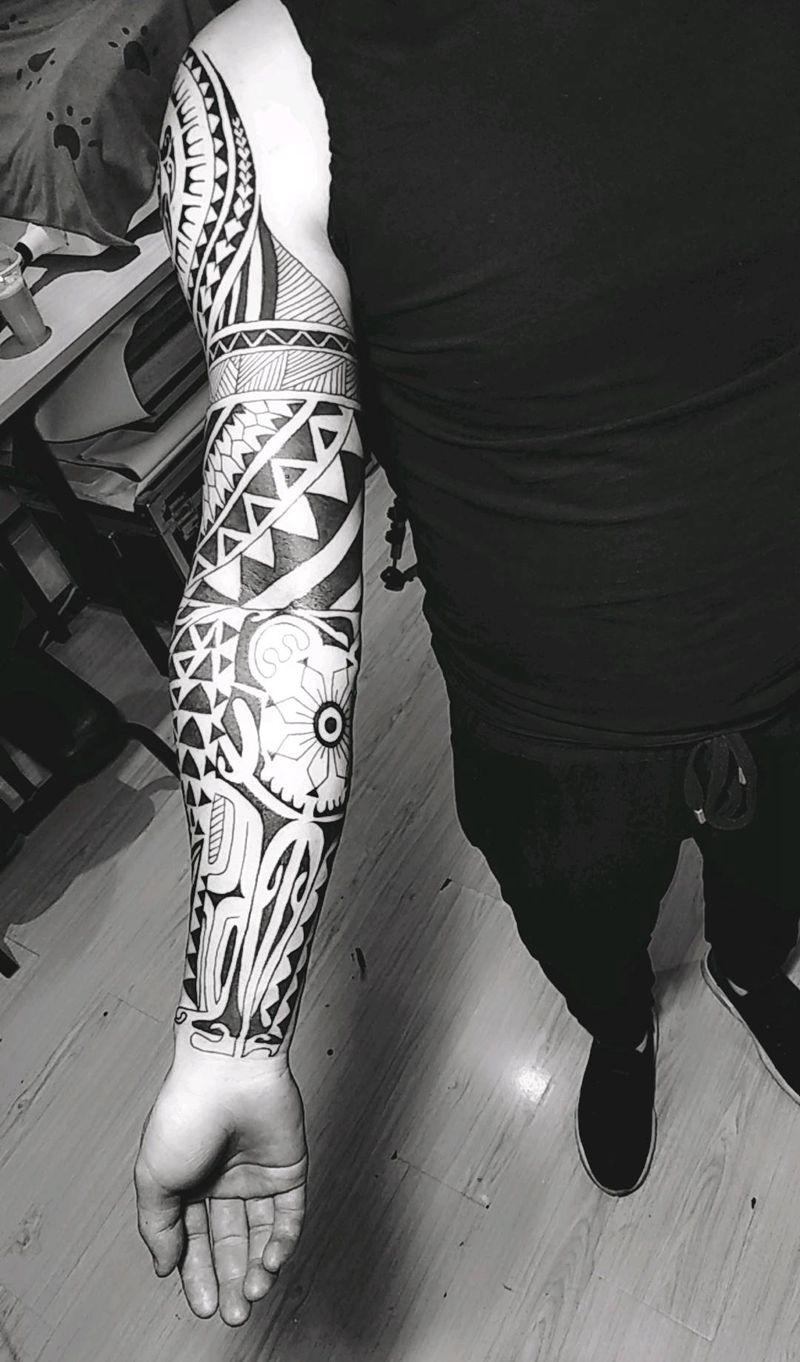当前位置: 首页 >云南省曲靖市纹身店-金艺神刺工作室纹身图案>花臂 图腾。完成纹身图片_手臂图腾纹身图案