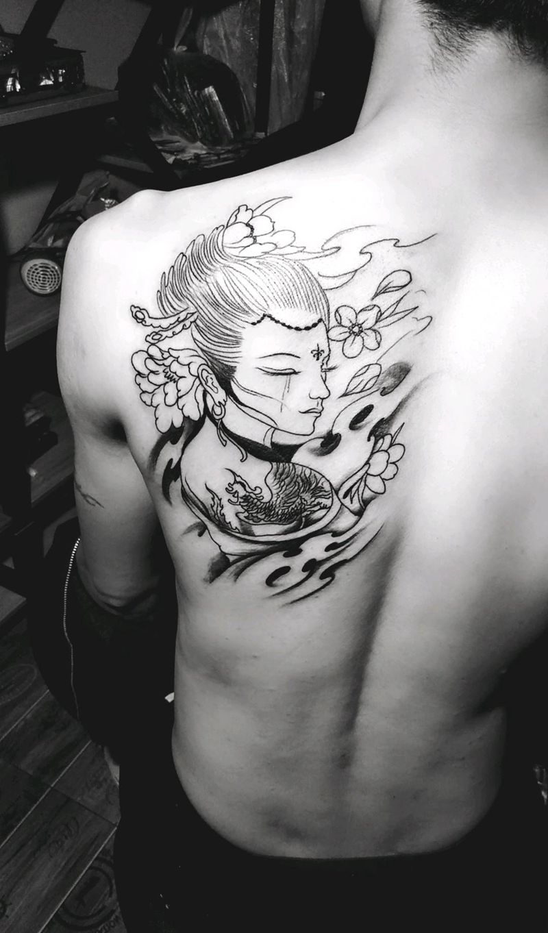 艺妓 未完成纹身图片_背部纹身图案