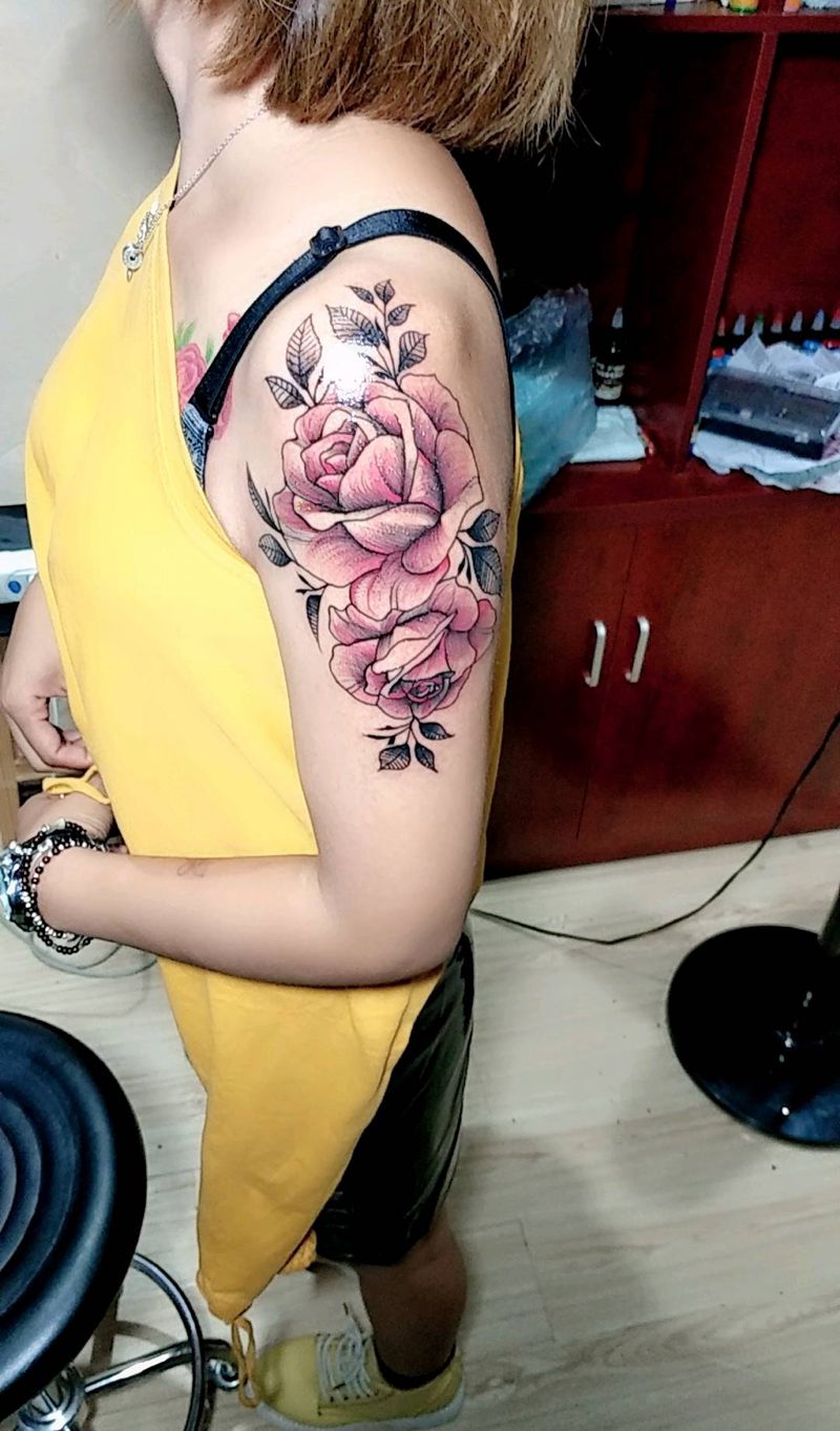 • 女性大花胸纹身_43张霸气漂亮的女性大花胸纹身图案作品