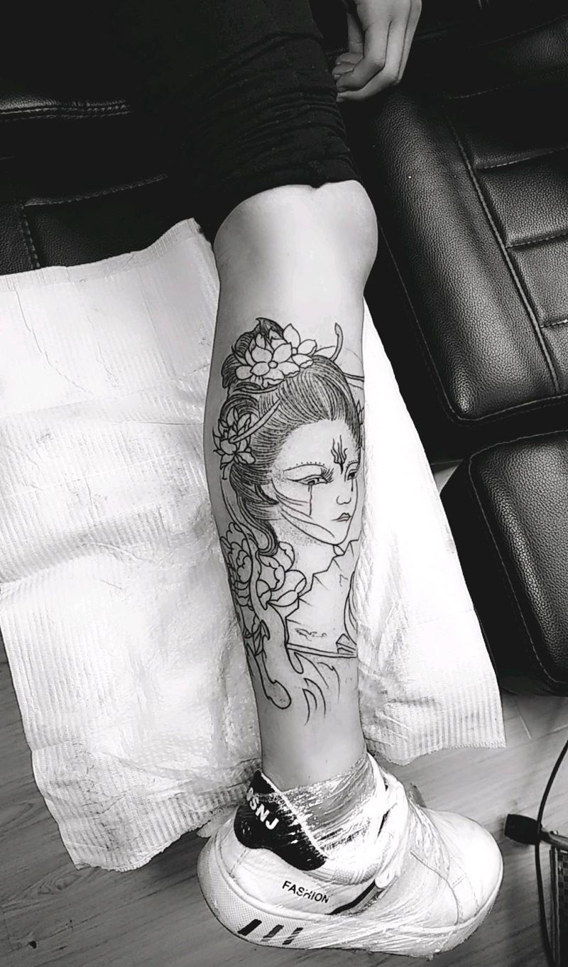 当前位置: 首页 >云南省曲靖市纹身店-金艺神刺工作室纹身图案>艺妓纹身图片_腿部纹身图案