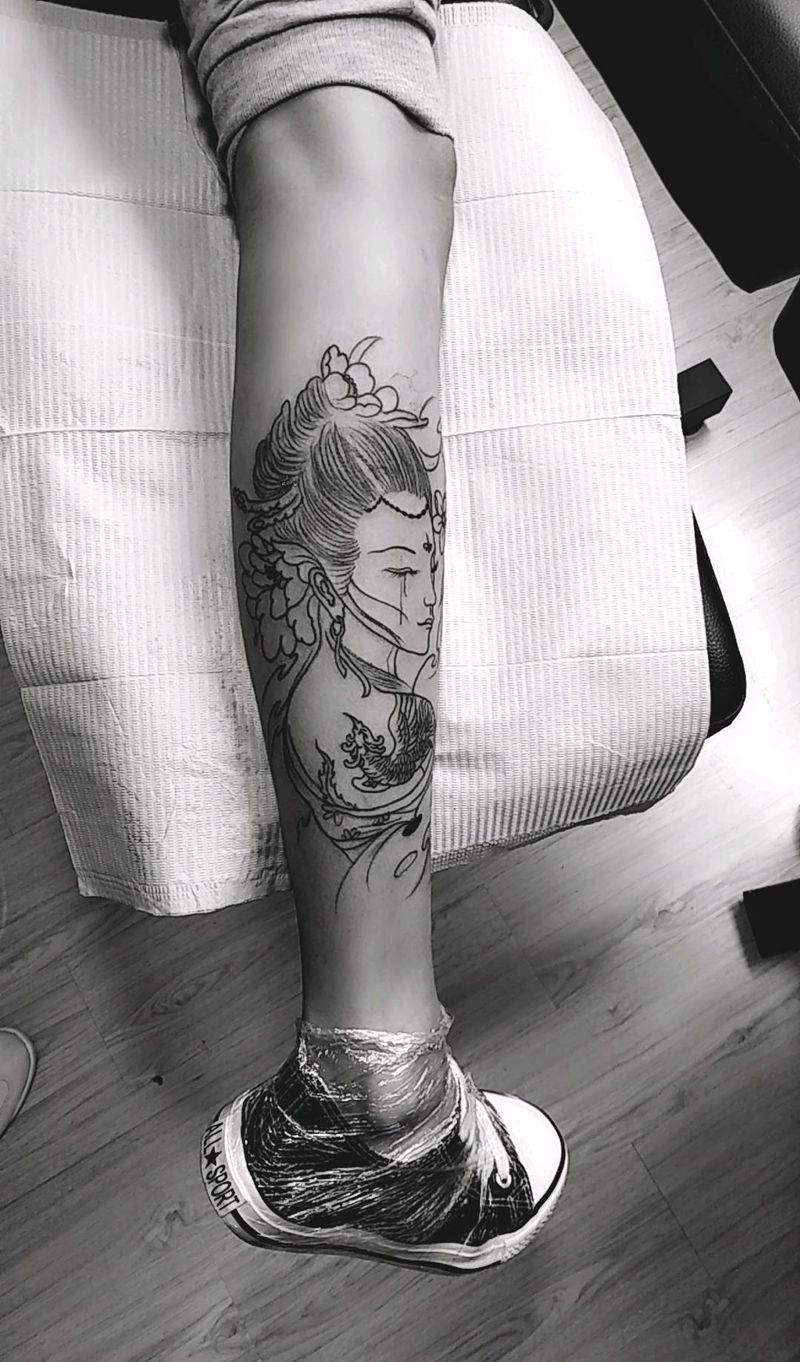 当前位置: 首页 >云南省曲靖市纹身店-金艺神刺工作室纹身图案>艺妓纹身图片_腿部纹身图案