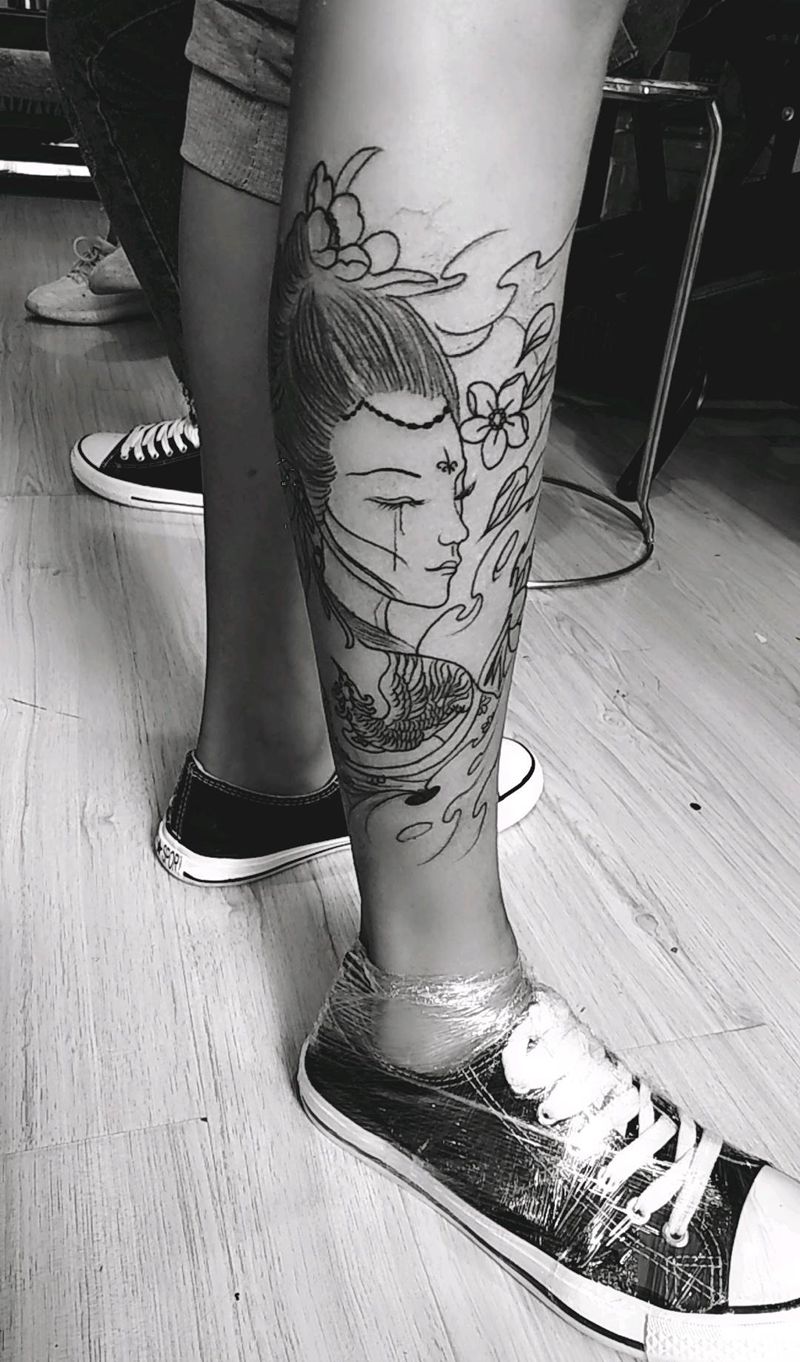 当前位置: 首页 >云南省曲靖市纹身店-金艺神刺工作室纹身图案>艺妓纹身图片_腿部纹身图案