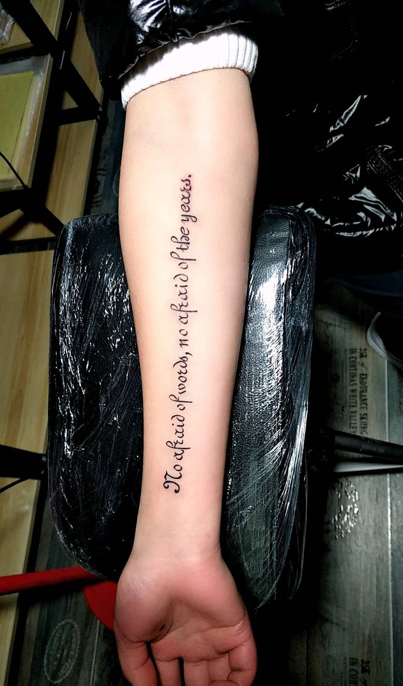 当前位置: 首页 >云南省曲靖市纹身店-金艺神刺工作室纹身图案>小图 英文字母纹身图片_手臂花体字纹身图案